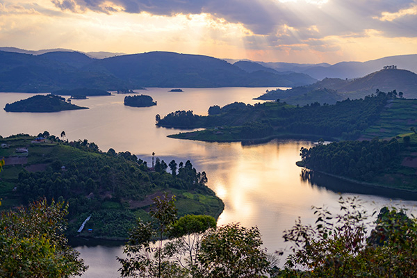 El Lago Bunyonyi, entre colinas aterrazadas del suroeste, se extiende como un mosaico de islotes envueltos en niebla. Su nombre significa “lugar de muchas aves”, reflejo de la abundante avifauna que habita sus orillas. Exento de bilharzia y cocodrilos, ofrece un entorno plácido rodeado de aldeas y cultivos. Es un refugio de calma y belleza escénica que encarna la Uganda más apacible y pintoresca.